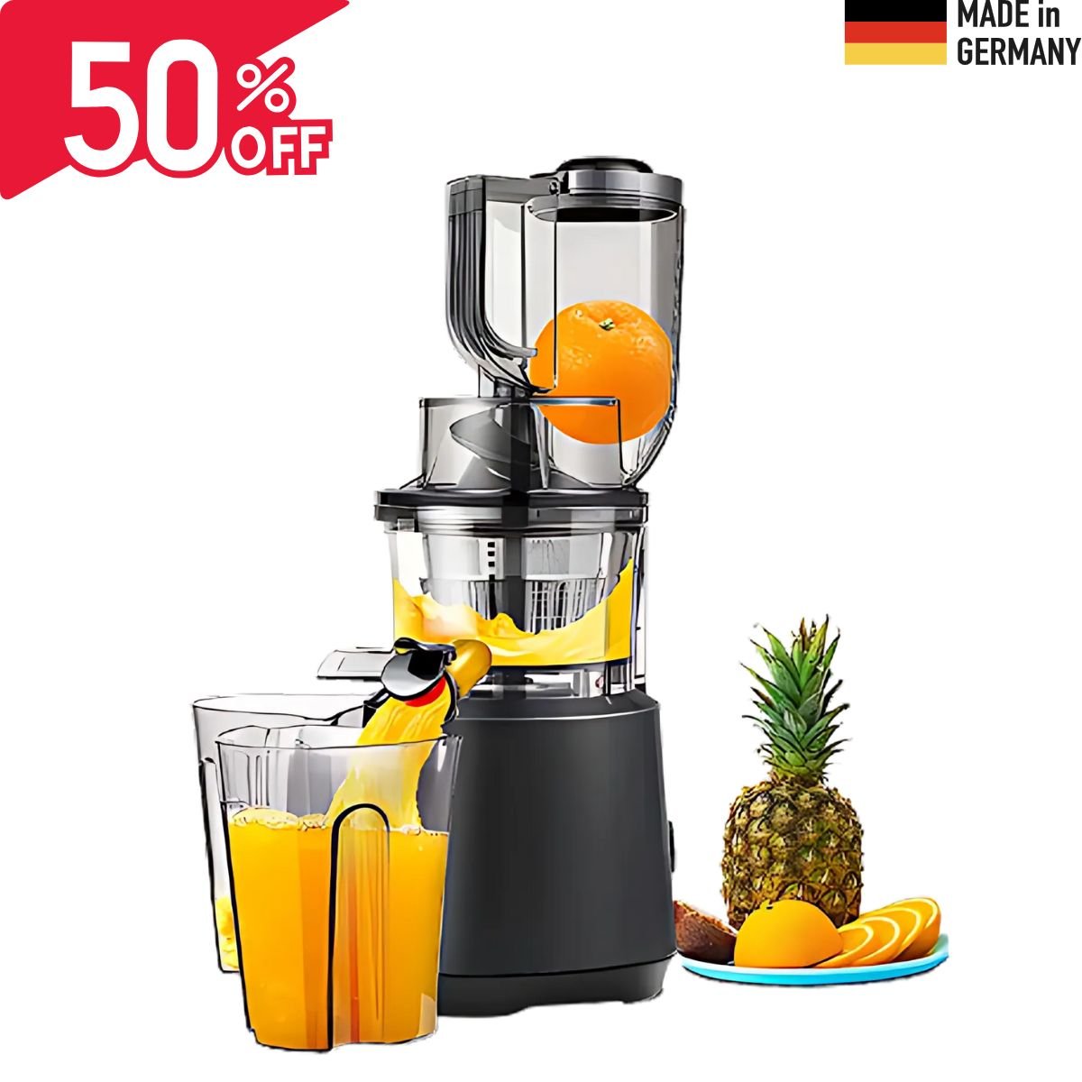 Odkryj moc świeżych soków pełnych składników odżywczych dzięki naszemu innowacyjnemu sokowiarkowi! Idealny dla wszystkich, którzy chcą cieszyć się zdrowymi i naturalnymi napojami każdego dnia, z maksymalną łatwością. Zachowuje wszystkie niezbędne składniki odżywcze owoców i warzyw, dzięki czemu każdy łyk jest tak samo świeży i pożywny, jak stworzyła go natura.