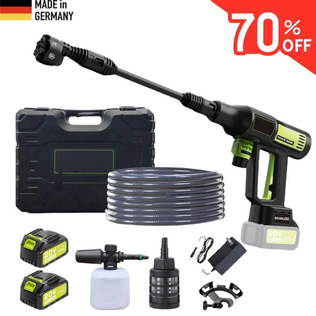 Esqueça os tubos sujos e os cabos de alimentação! Este limpador portátil de alta pressão oferece um poder de limpeza potente sem cabos, onde quer que você precise – ideal para carros, bicicletas, terraços e equipamentos externos. Graças à bateria recarregável, pressão ajustável e construção leve, a limpeza é mais rápida, fácil e confortável. Não tem tomada elétrica? Não há problema.