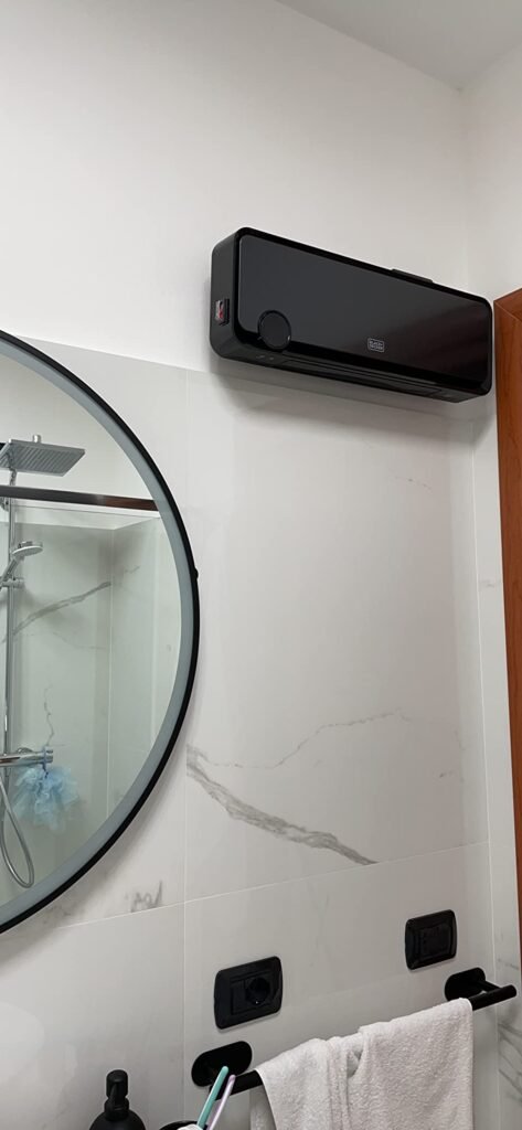 Cù a prutezzione IPX2 contr’à l’umidità, questu riscaldatore funziona in modu sicuru in i bagni, furnendu calore senza risicu.