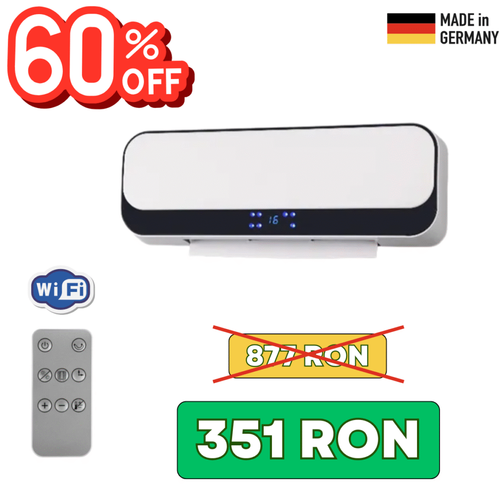 Încălzitor economic de 1600W cu oscilație, WiFi și telecomandă – soluție elegantă, silențioasă și inteligentă pentru casă sau birou.